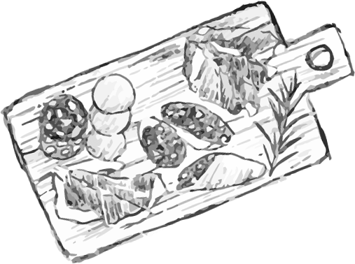 店主夫婦が厳選したワインと、地元の旬の⾷材を使ったシンプルかつ丁寧な料理をご⽤意しています。